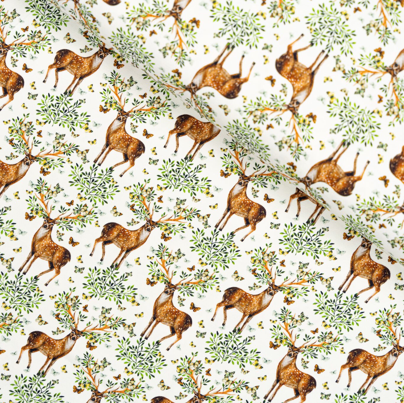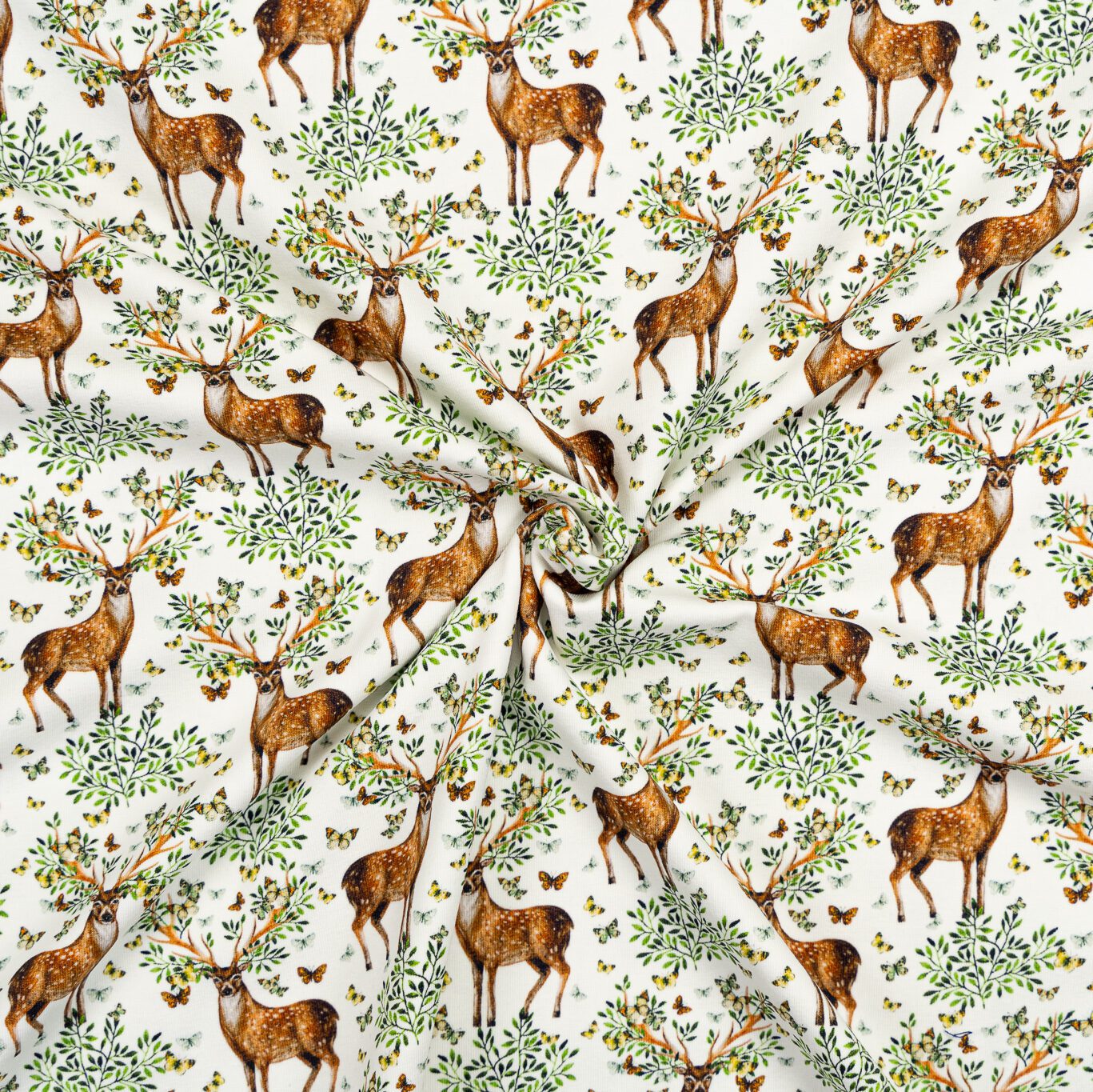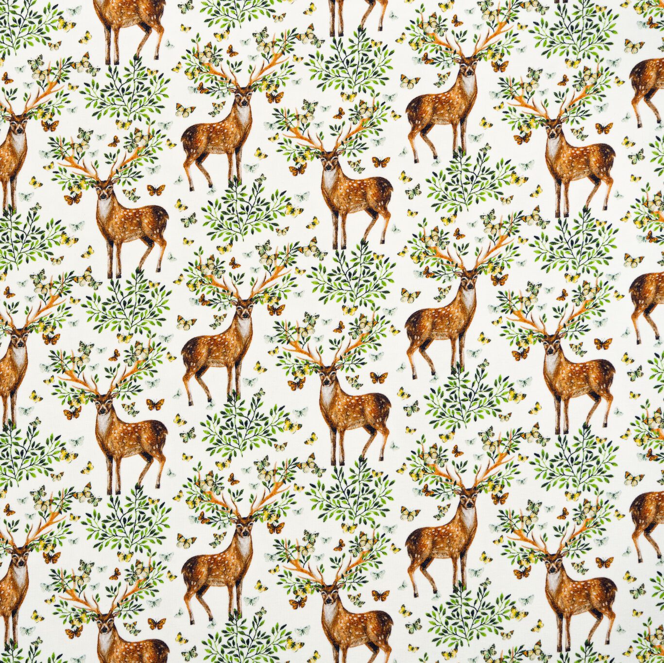 Baumwolljersey Hirsch Ecru